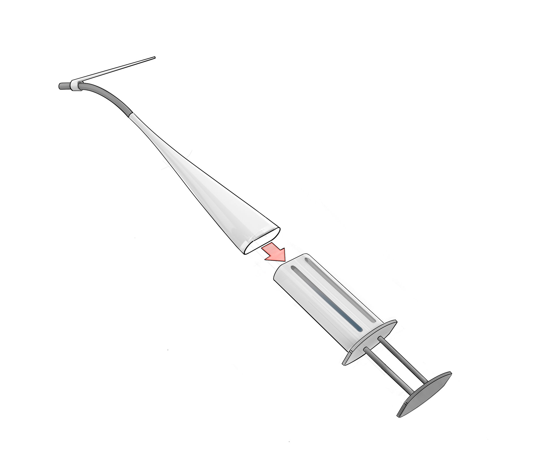 Step 2 : Draw the syringes back to mix the two fluids and the powder. Repeat this step till the mixture is fully mixed.